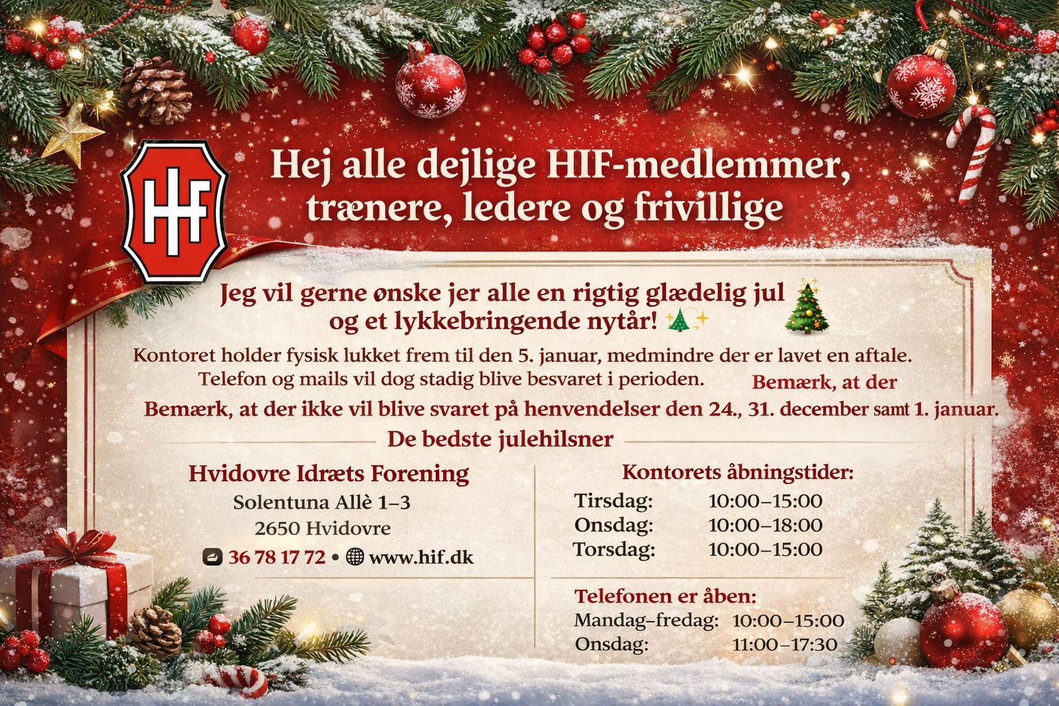 Hej alle dejlige HIF-medlemmer, trænere, ledere og frivillige